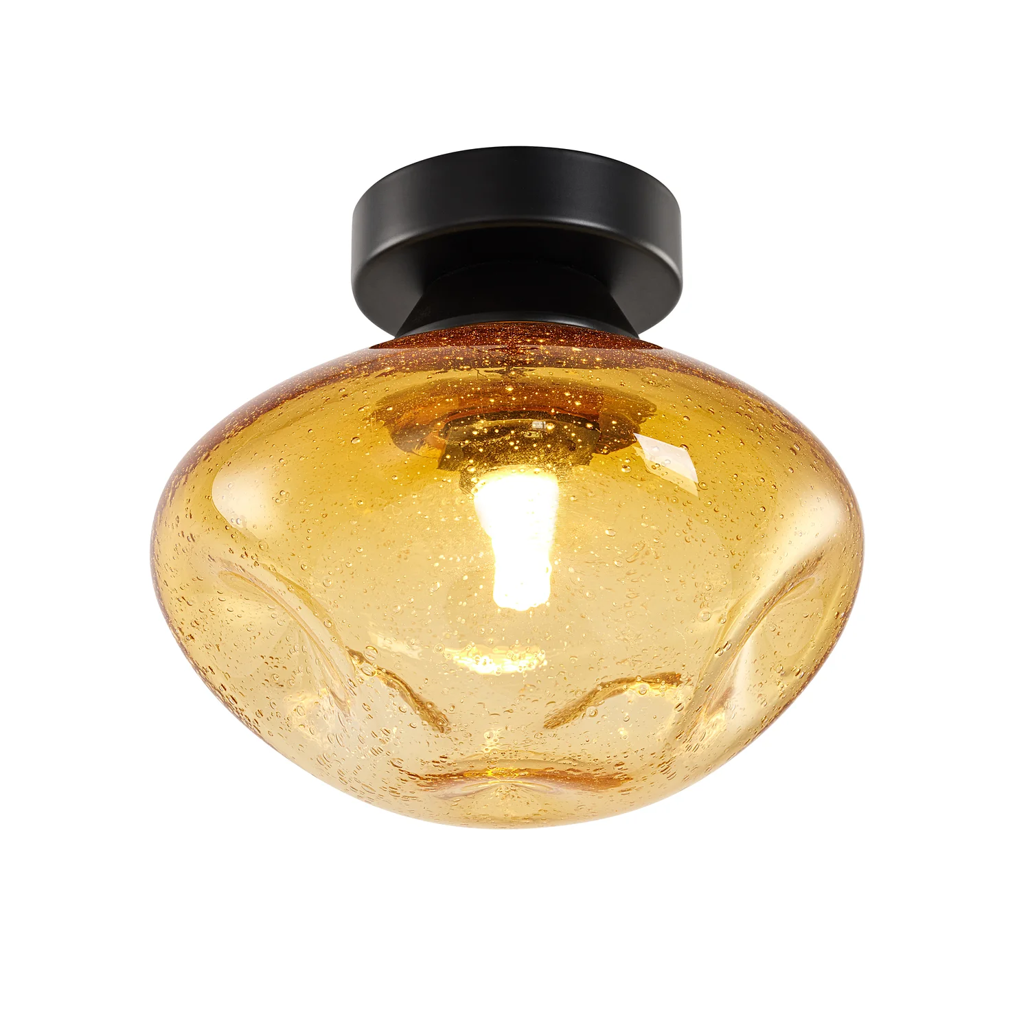 Светильники Cosmos обладают смелым, современным, космическим дизайном. Ключевой элемент этих бра – плафон из прозрачного или янтарного стекла неправильной, слегка асимметричной формы, напоминающей каплю. Стекло имеет текстуру с множеством мелких пузырьков, что создаёт красивую игру света при включении: свет мягко рассеивается, а пузырьки дают интересные блики. Каждый светильник коллекции Cosmos действительно уникален, так как изготавливается вручную, и фактура, и расположение пузырьков в каждом из них уникальны. Общий вид светильников минималистичный, элегантный, подходит для современных интерьеров, а также концепций в скандинавском или лофт стиле.