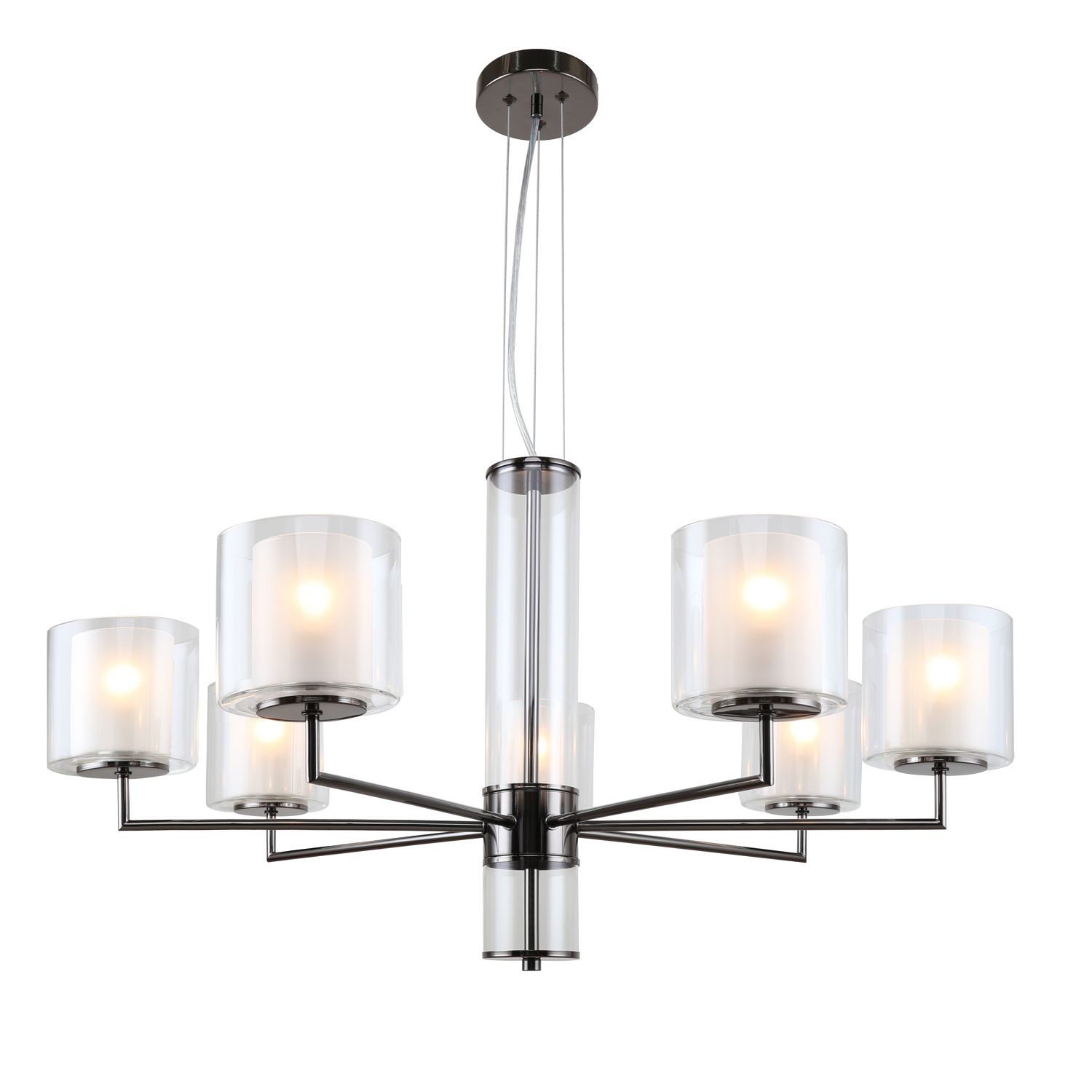 Оригинальные плафоны из двойного стекла – изюминка коллекции светильников Proper. Внутренние плафоны выполнены из матового белого стекла, внешние – из прозрачного стекла. Вторым оригинальным элементом коллекции является центральный шток с декоративным стеклянным цилиндром. Крепление на тросах позволяет регулировать высоту. В коллекцию входит подвесная люстра и настенный светильник в двух цветах: латунь и жемчужночерный.