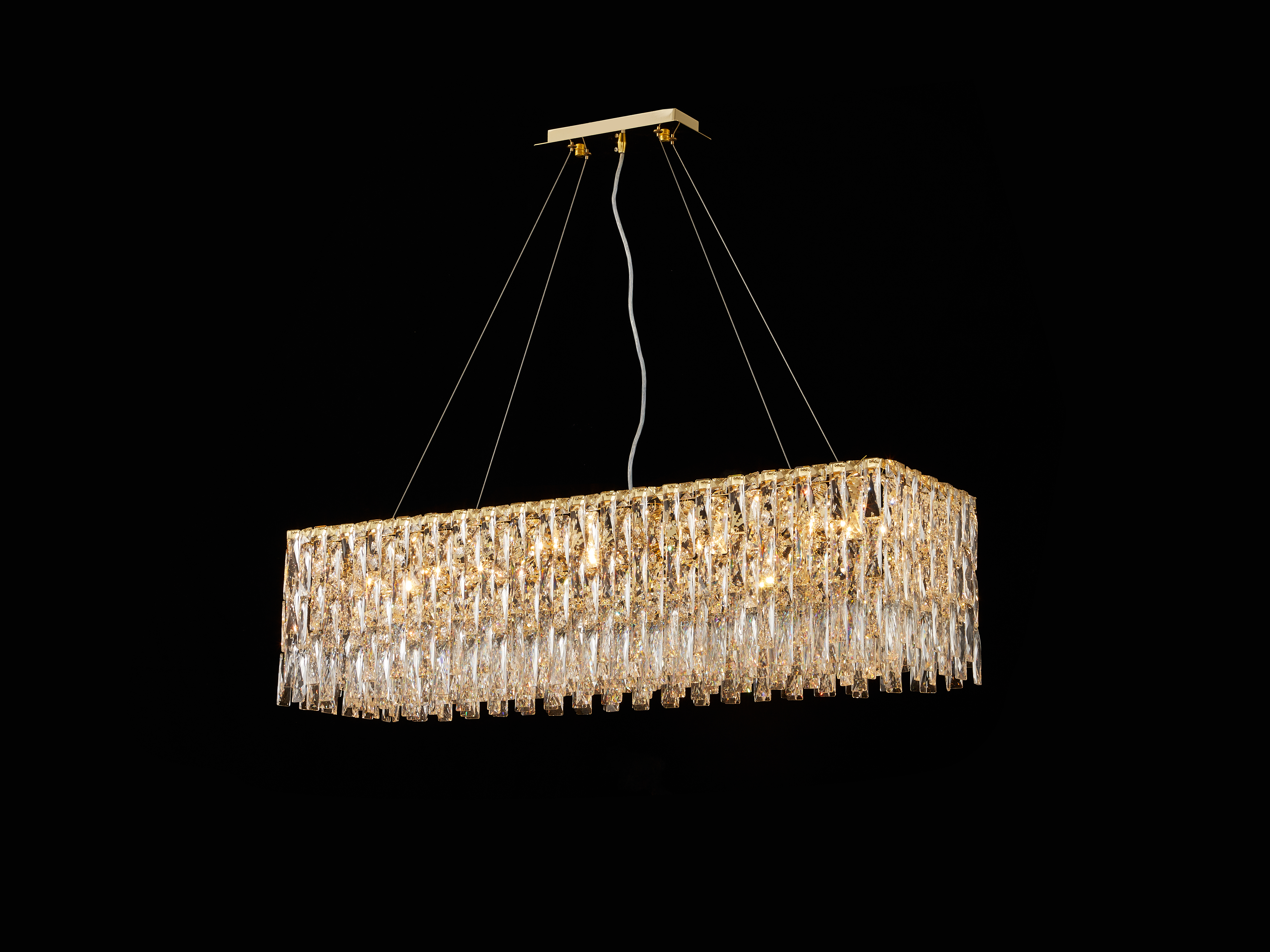 Коллекция светильников Robby включает в себя люстры и бра, щедро украшенные хрусталём. Прямоугольные медальончики из прозрачного хрусталя собраны в цепочки разной длинны и прикреплены к металлическому каркасу, окрашенному в глянцевый золотой цвет. Такое сочетание позволит мерцающим и переливающимся светильникам Robby создать в помещении атмосферу истинной роскоши и стать ключевым элементом вашего интерьера.