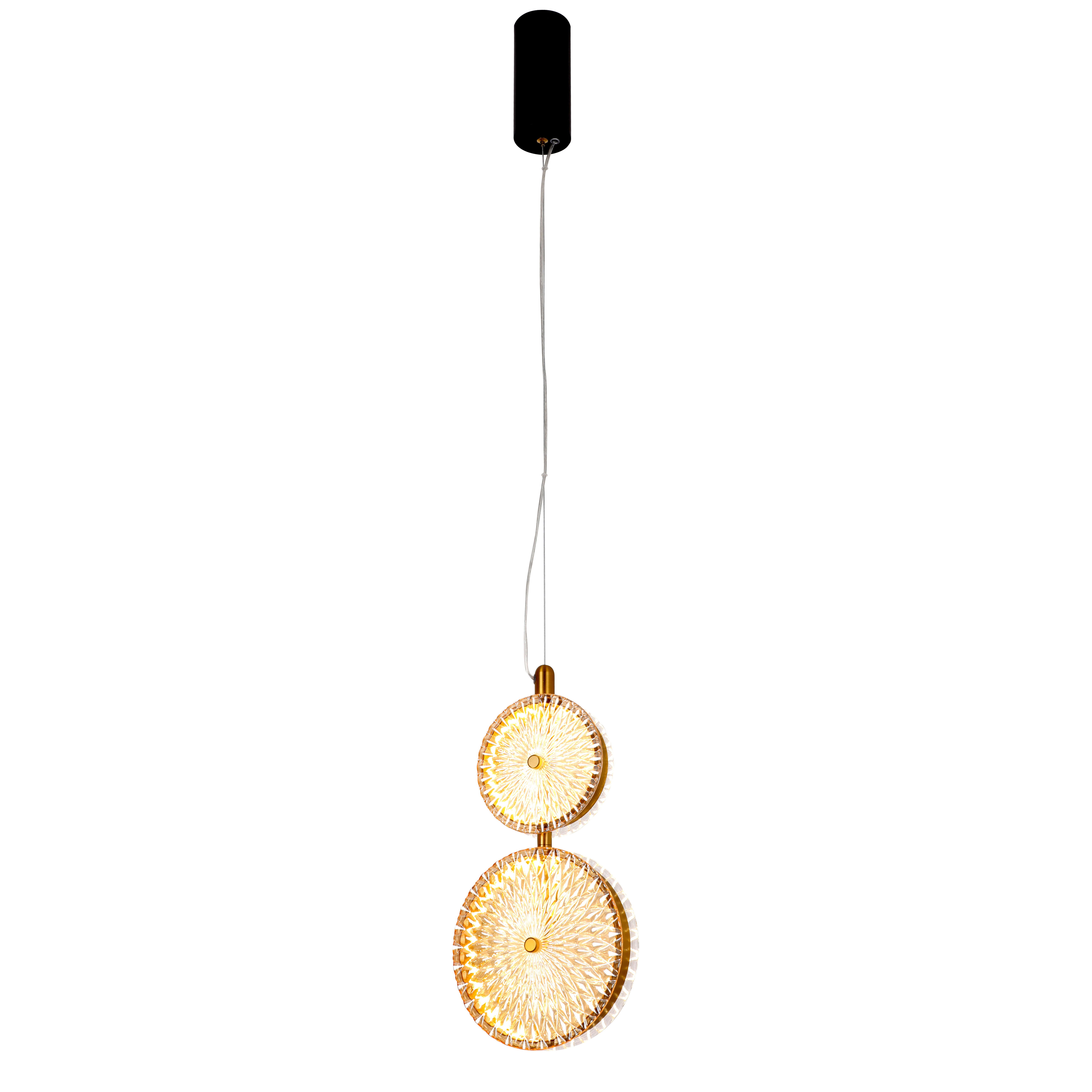 Плафон светильников Slik состоит из двух узорных стеклянных дисков прозрачного и янтарного цвета, внутри которых расположен источник LEDсвета. Графический узор стекла эффектно рассеивает свет, плафоны разного размера позволят создать яркую композицию.