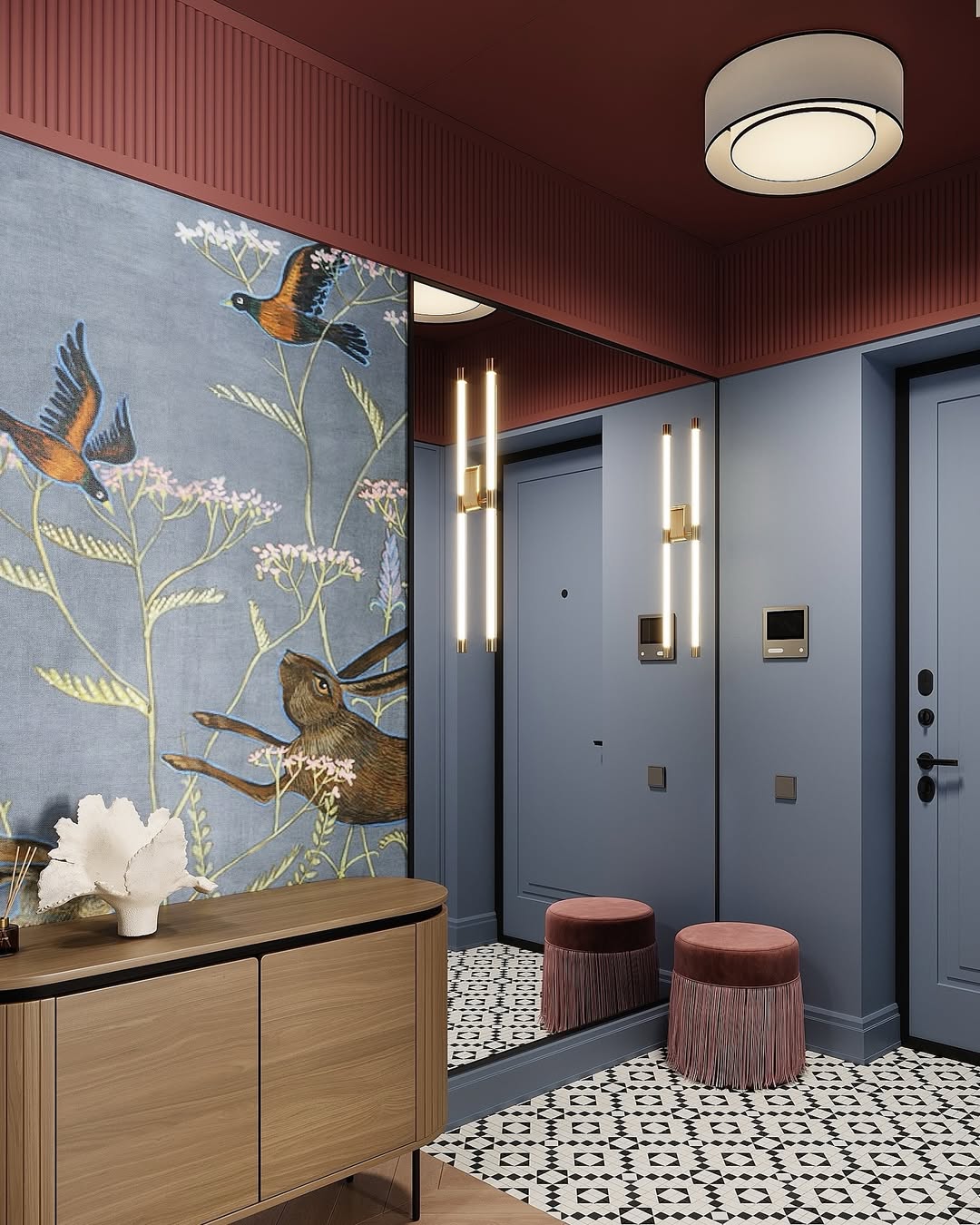 ✨ Бра у зеркала мягко подчёркивают глубину стен и добавляют теплое сияние;